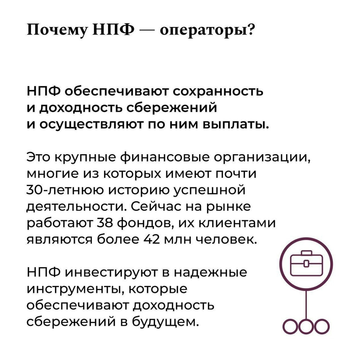 Программа предполагает, что гражданин платит добровольные взносы в негосударственный пенсионный фонд (НПФ), а фонд инвестирует их, обеспечивая доходность вложений.